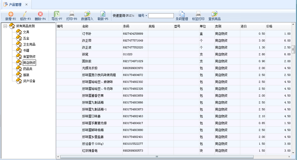 5.商品管理:設(shè)置商品的條碼、名稱、規(guī)格、進(jìn)價(jià)、售價(jià)等基本資料。