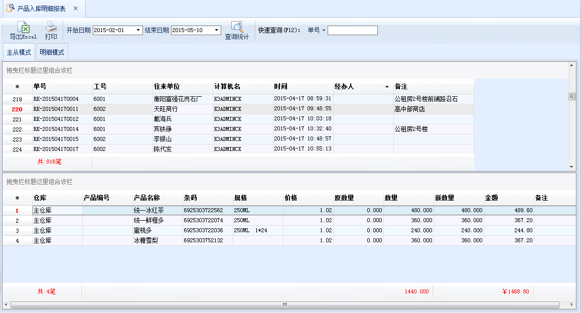 9.各種明細(xì)報(bào)表:產(chǎn)品入庫、領(lǐng)用、調(diào)撥等操作的流水明細(xì)報(bào)表。
