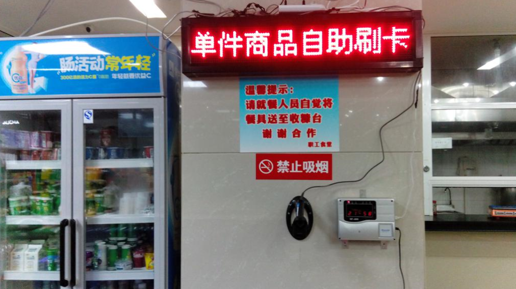 2.單件商品自助刷卡:在我公司十多年食堂產(chǎn)品服務(wù)的經(jīng)驗(yàn)上總結(jié)其實(shí)有相當(dāng)一部分就餐購買酸奶或者飲料的消費(fèi)者只是配合就餐購買一件商品。然而傳統(tǒng)的收銀方式,會讓這部分結(jié)算操作變得很慢。我公司針對這一情況開發(fā)了單件商品自助刷卡系統(tǒng)。條碼掃描槍同超市收銀系統(tǒng)的商品價(jià)格進(jìn)行綁定,掃條碼后消費(fèi)機(jī)上自動出現(xiàn)此商品的價(jià)格并且等待消費(fèi)者刷卡。消費(fèi)者如不刷卡,機(jī)器不停的報(bào)警。刷卡后再讓下一位進(jìn)行條碼掃描。速度快,無出錯(cuò),并且一個(gè)管理人員可監(jiān)管多臺自助刷卡機(jī)。