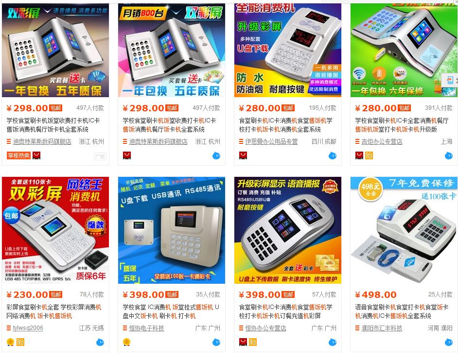 淘寶上售飯機(jī)一搜一大把,但是仔細(xì)觀察一下,你可以發(fā)現(xiàn)這一類售飯機(jī)都沒有品牌!而且外觀大同小異!盡管功能看起來非常強(qiáng)大,而且價(jià)格非常便宜,似乎是理想選擇,但是,消費(fèi)機(jī)不是一錘子買賣,這個(gè)還需涉及到售后以及技術(shù)支持,關(guān)于這方面需要慎重考慮。